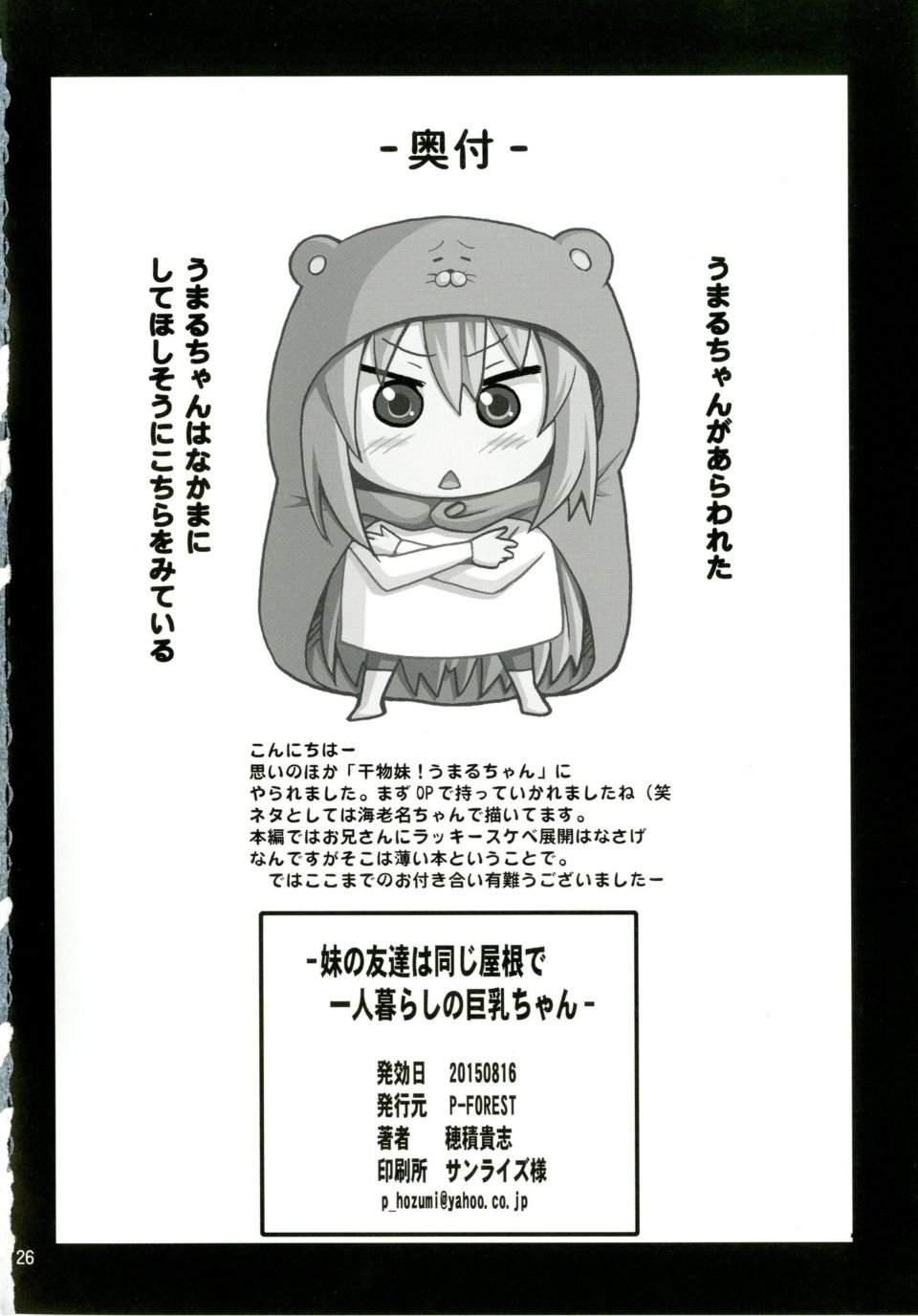 首頁>同人誌>(C88) [P-Forest (穂積貴志)] 妹の友達は同じ屋根で一人暮らしの巨乳ちゃん (干物妹!うまるちゃん)>26