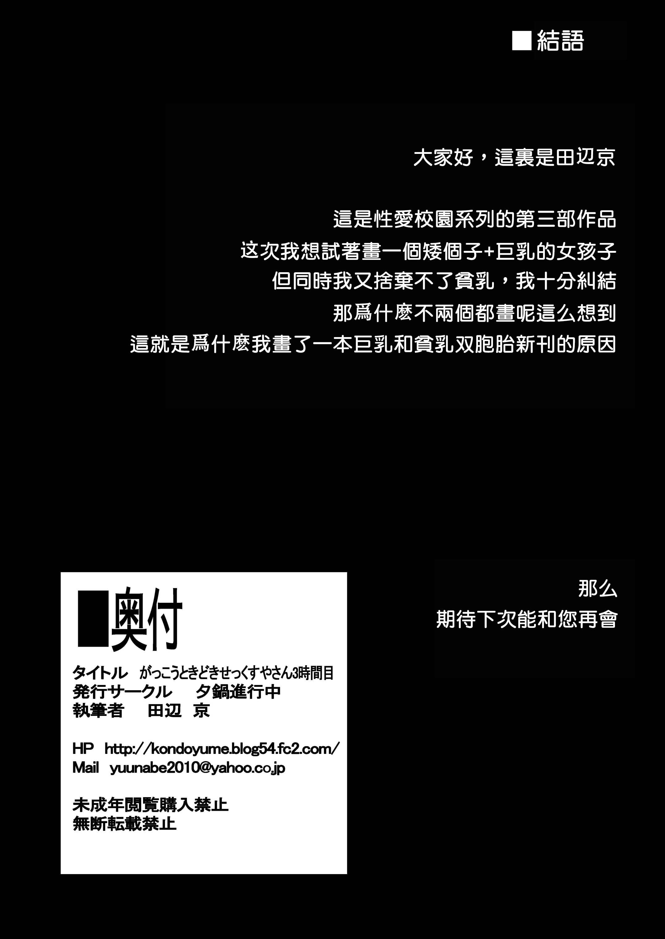 首頁>同人誌>漢化>[夕鍋進行中 (田辺京)] がっこうときどきせっくすやさん3時間目ドスケベツインズ編 [DL版] [橘子糖個人漢化]>34
