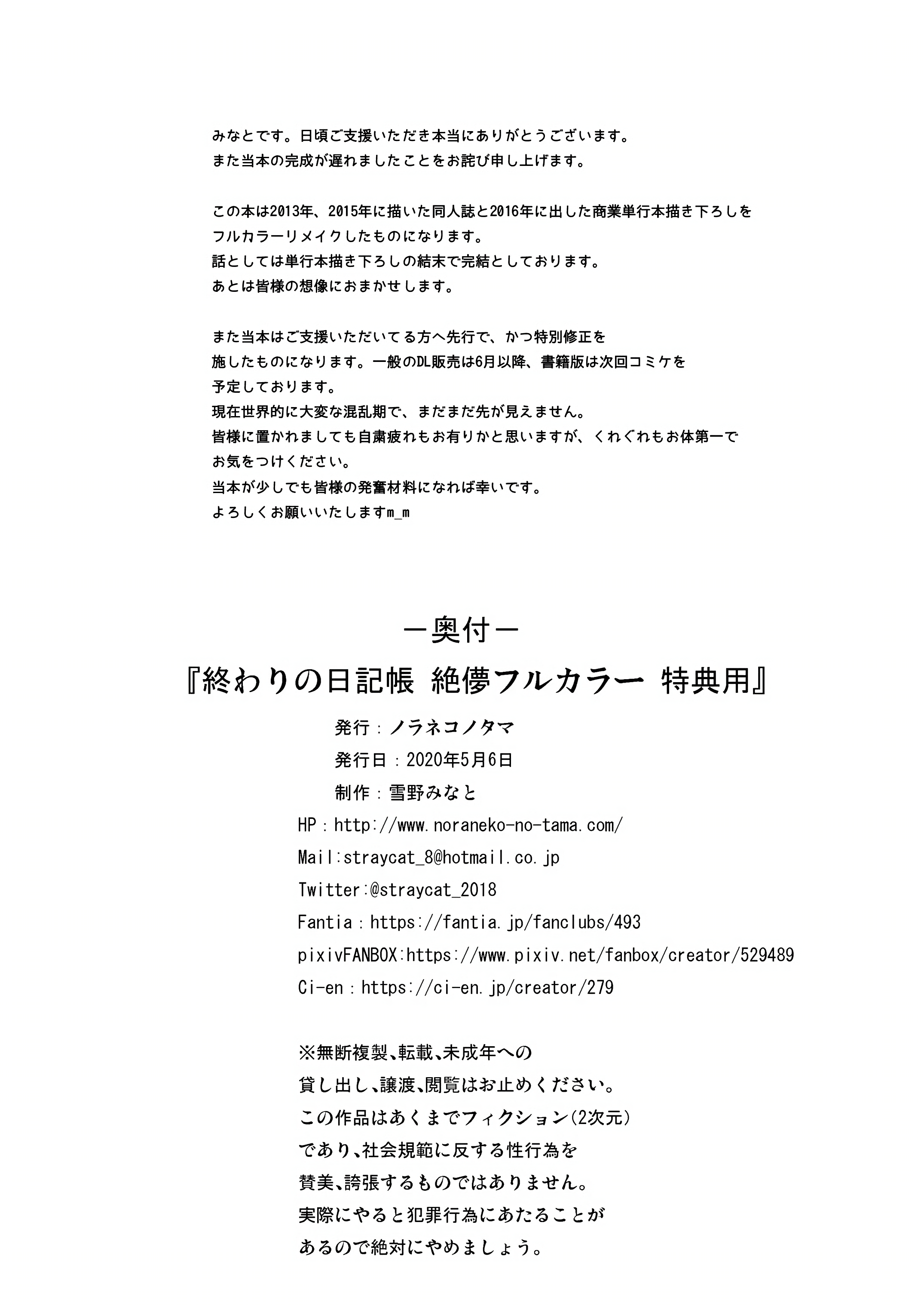 首頁>同人誌>漢化>[ノラネコノタマ (雪野みなと)] 終わりの日記帳 絶儚フルカラー [夜空个人汉化,zard重嵌] [無修正]>51