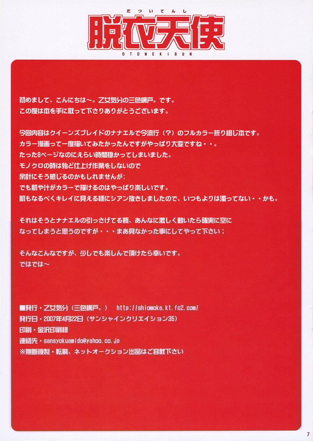 首頁>同人誌>漢化>[YUKI飛雪之城] (サンクリ35) [乙女気分 (三色網戸)] 脱衣天使 (クイーンズブレイド)>7