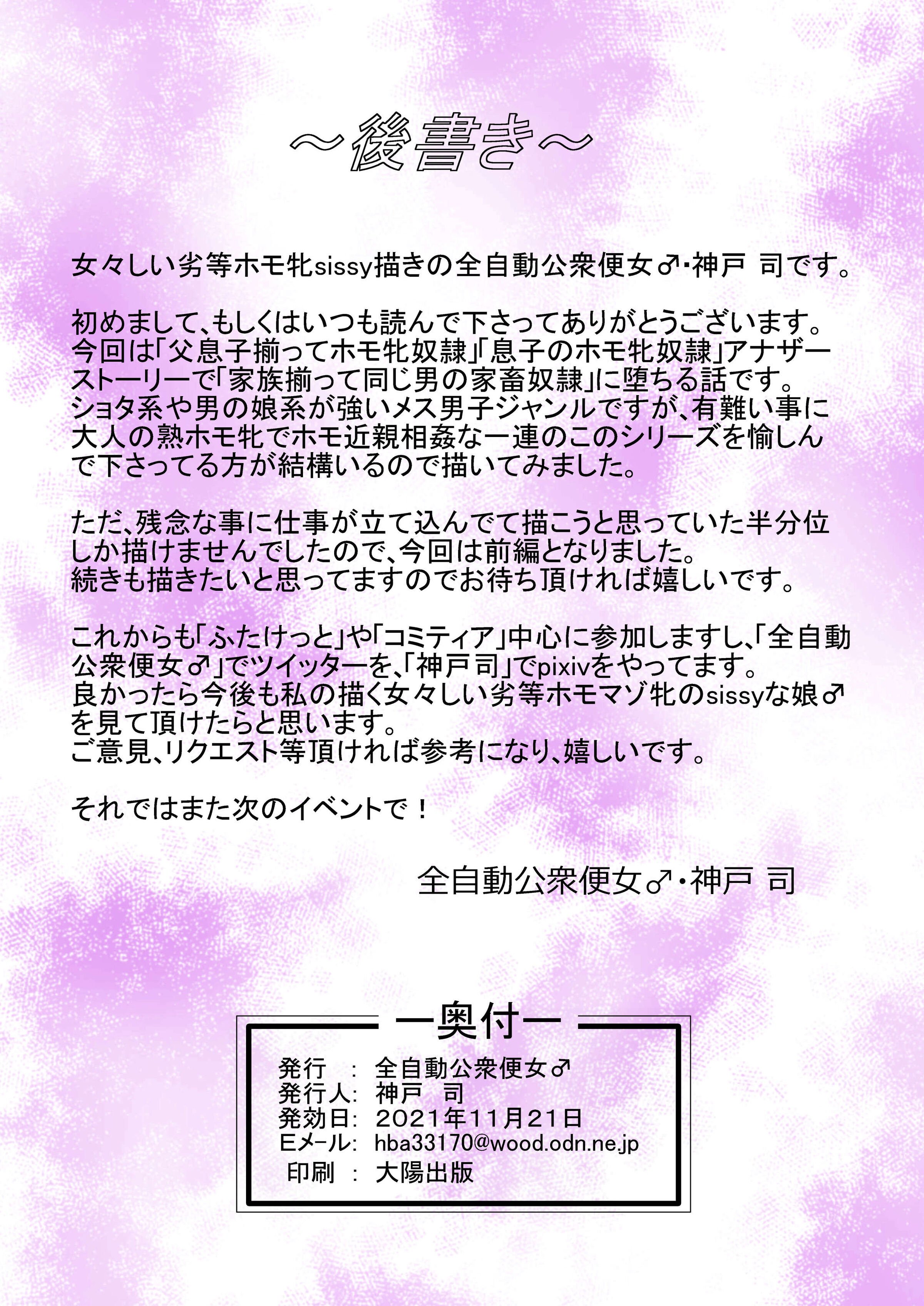 首頁>同人誌>漢化>[全自動公衆便女♂ (神戸司)] 一家揃ってメス堕ち家畜奴隷 ~前編~ [JE个人汉化]>14