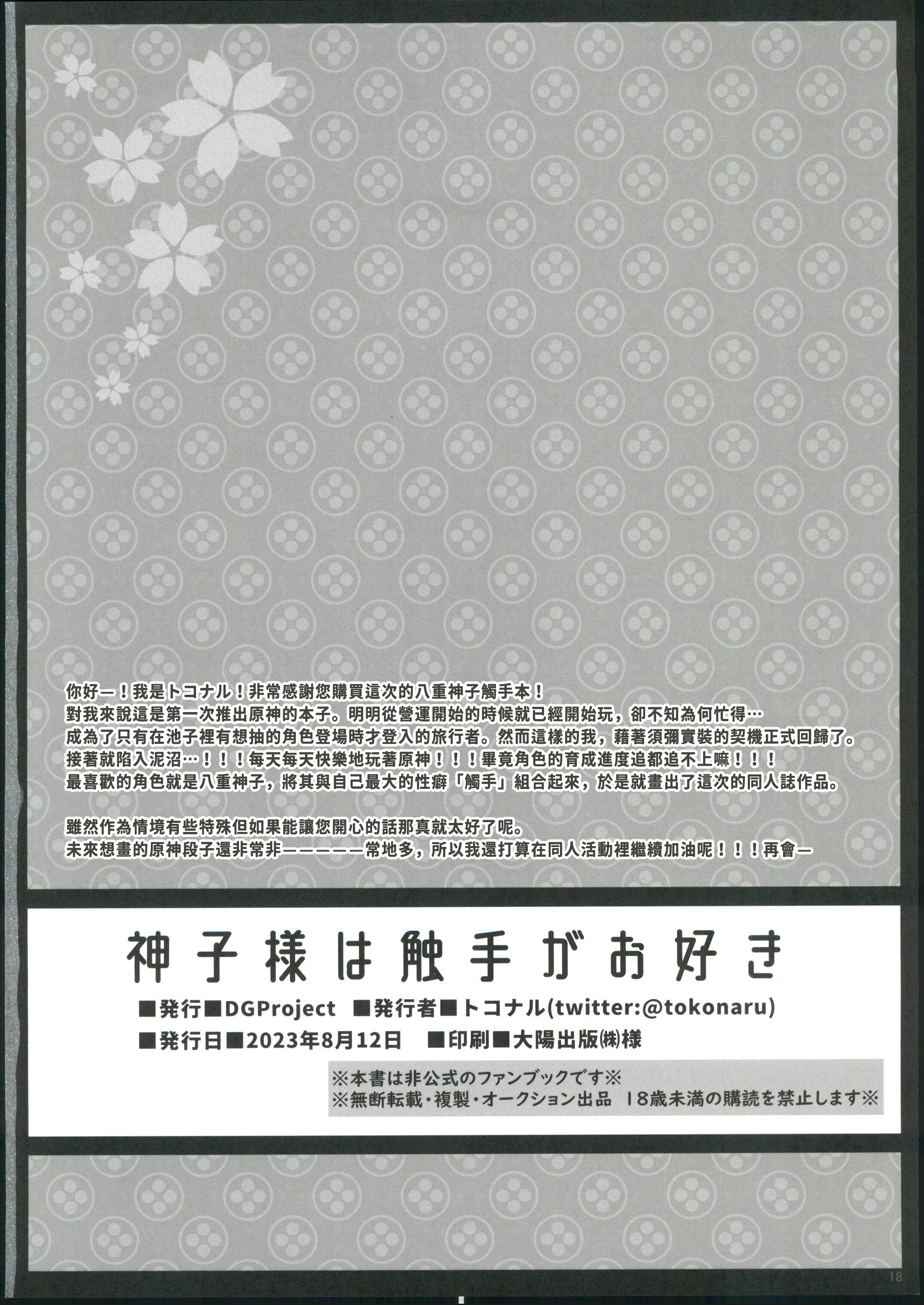 首頁>同人誌>漢化>(C102) [DG Project (トコナル)]  神子様は触手がお好き (原神) [中国翻訳]>17