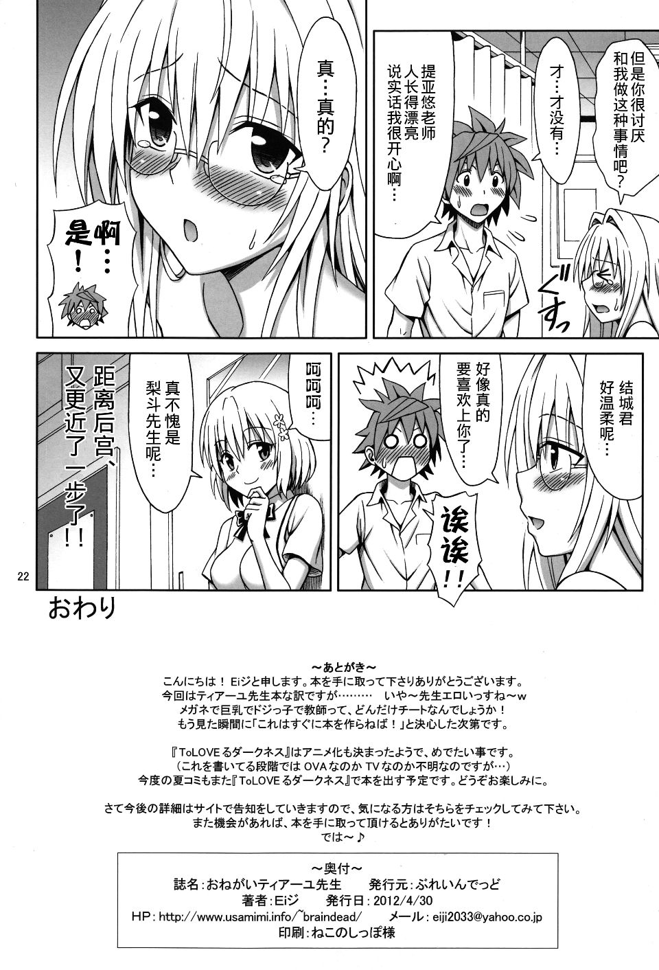 首頁>同人誌>(COMIC1☆6) [Brain Dead (Eiji)] Onegai Tearju Sensei (To Love-Ru Darkness)[CHINESE]>22