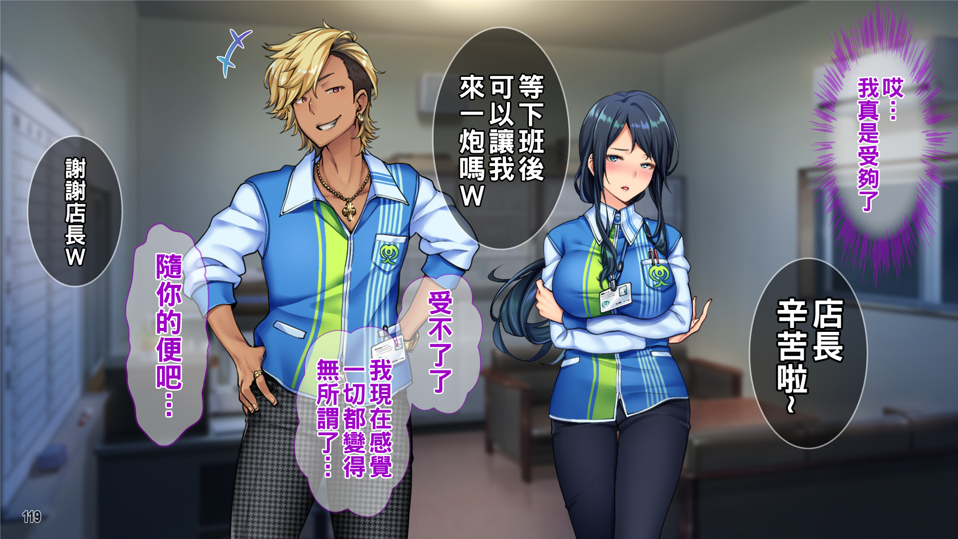 首頁>同人誌>漢化>[Tiramisu] チャラ男に屈服!イライラ女店長がバイトに脅され24時間セックス営業!>120_119