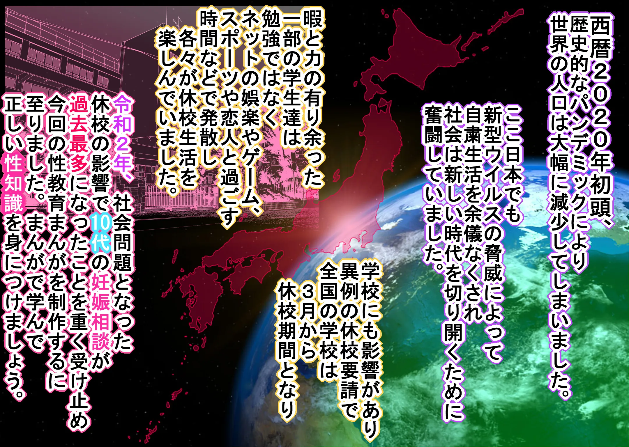 首頁>同人誌>日語>[I(アイ)☆私立 ななつ星中(私立 七つ星中)] 【妊娠急増】2020年 休校中の学生性活【令和2年 緊急性教育まんが】>01002