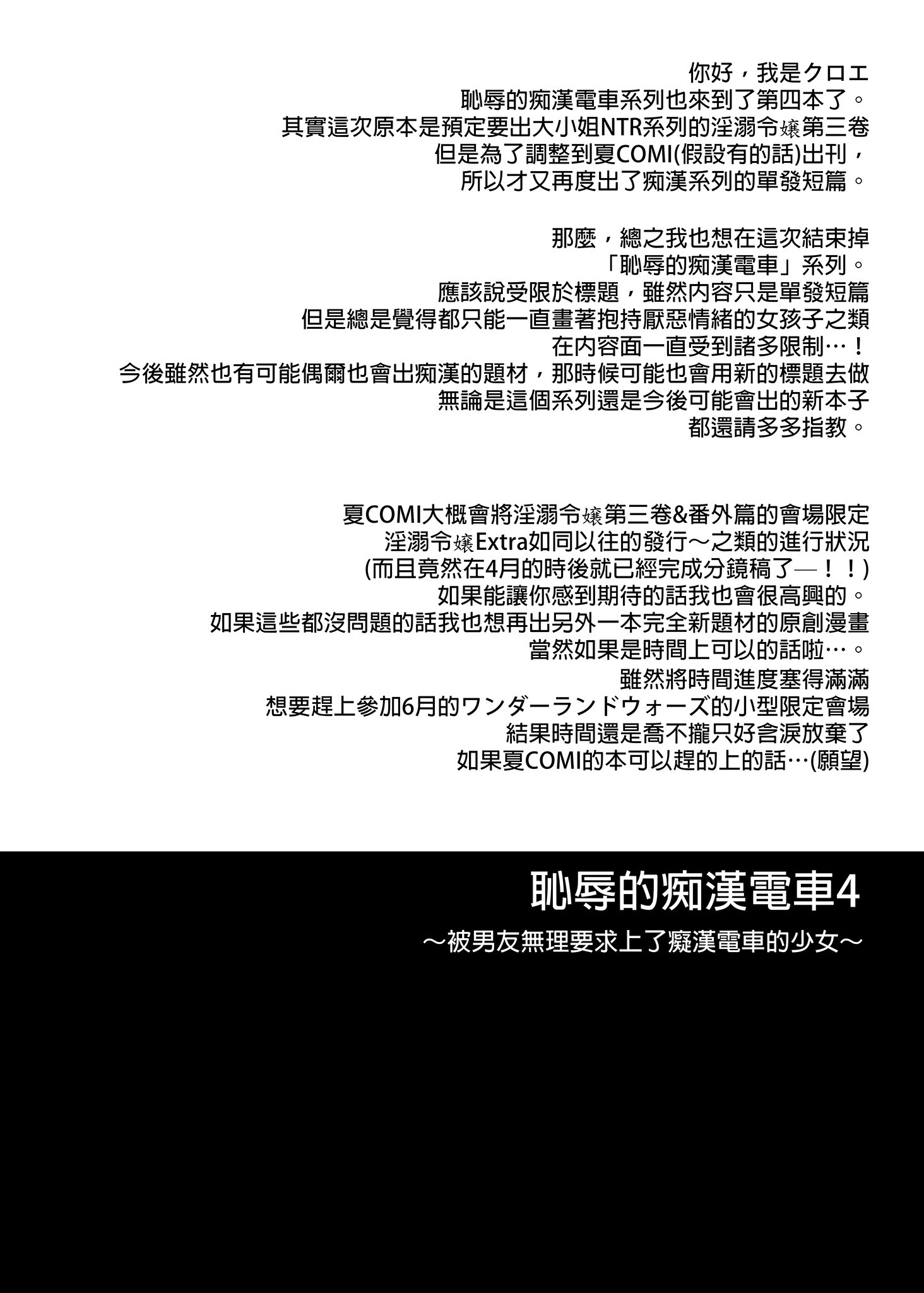 首頁>同人誌>漢化>[クロエ] 恥辱の痴漢電車総集編 [中国翻訳] [無修正] [DL版] [V2]>078