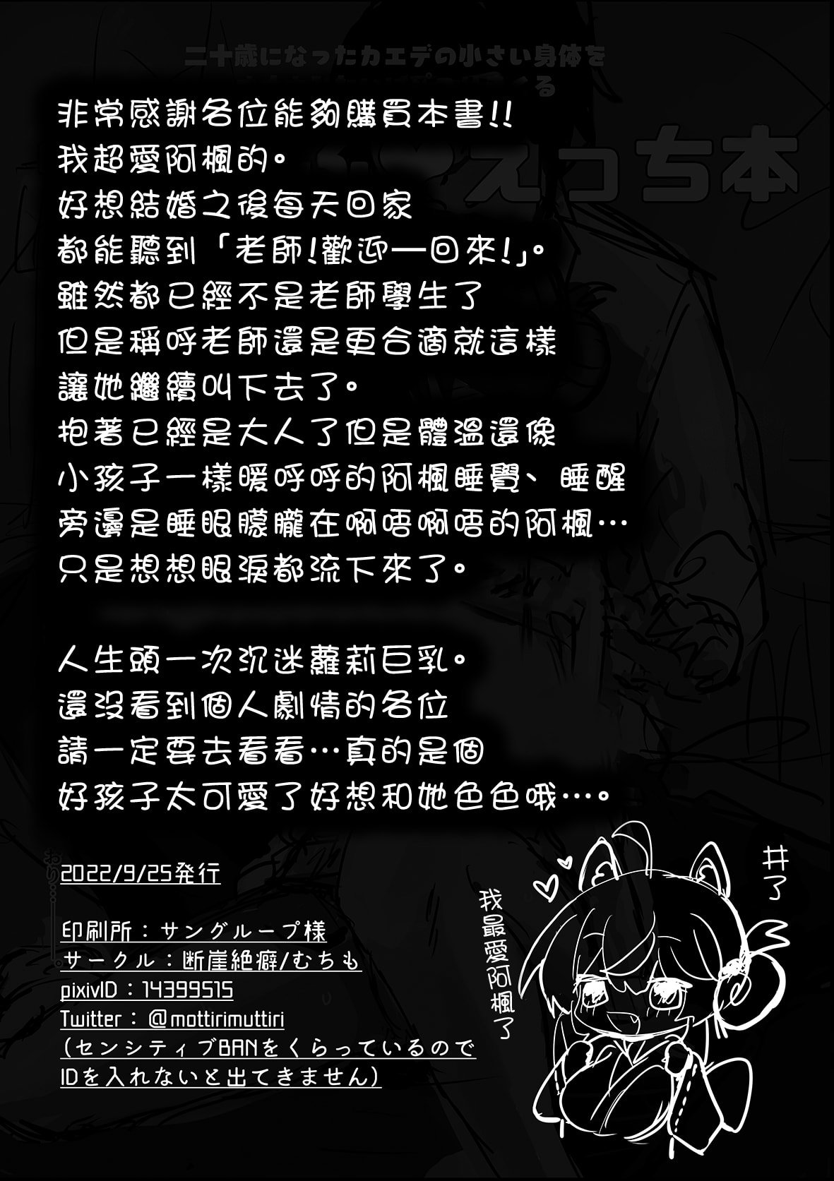首頁>同人誌>漢化>[断崖絶癖 (むちも)] 二十歳になってもちいさいままのカエデをオナホみたいにハメまくるらぶらぶえっち本 (ブルーアーカイブ) [中国翻訳] [DL版]>47