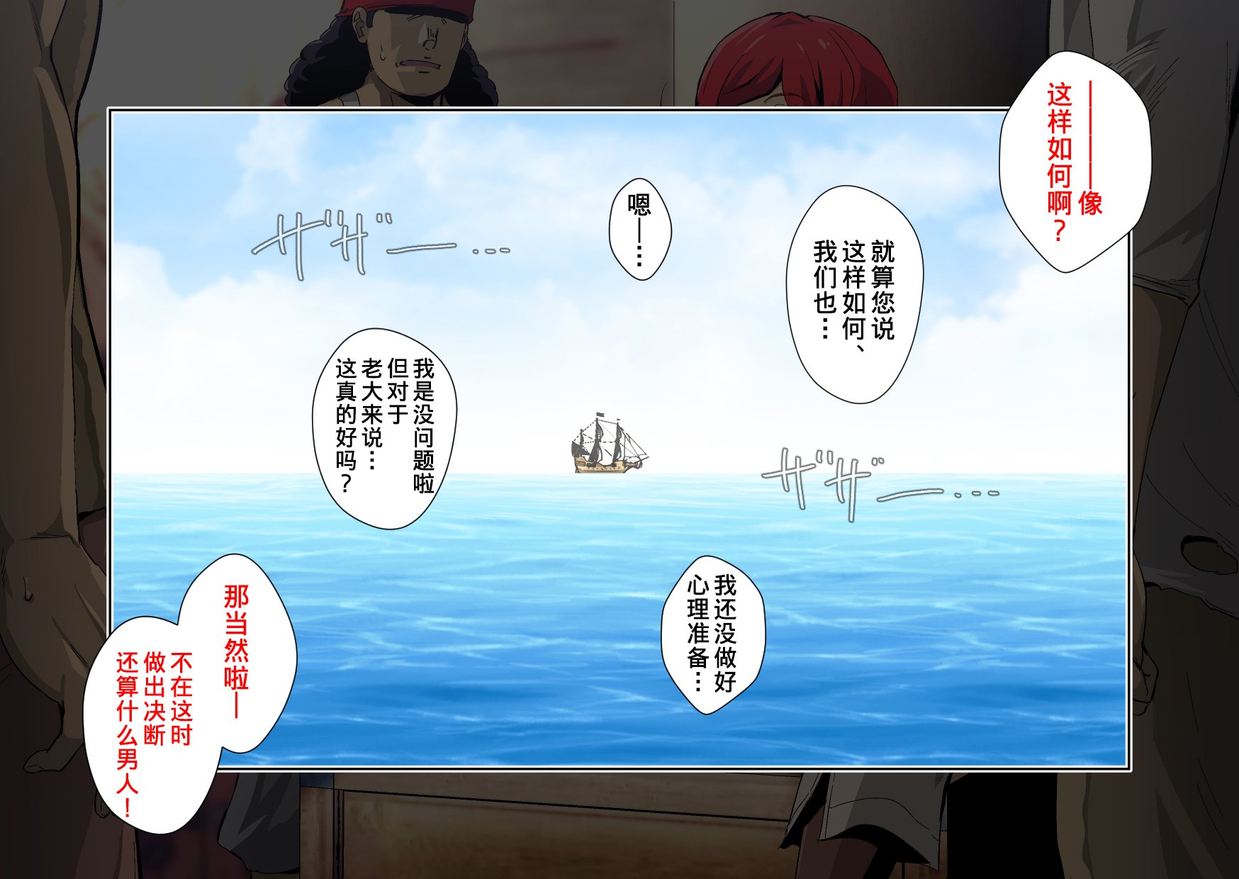 首頁>同人誌>漢化>[スパイラルブレーン (暮古浪漫)] 無礼講!DEKAパイレーツ~童貞海賊団と女体化船長~ [熊崎玉子汉化组]>010_CG_009