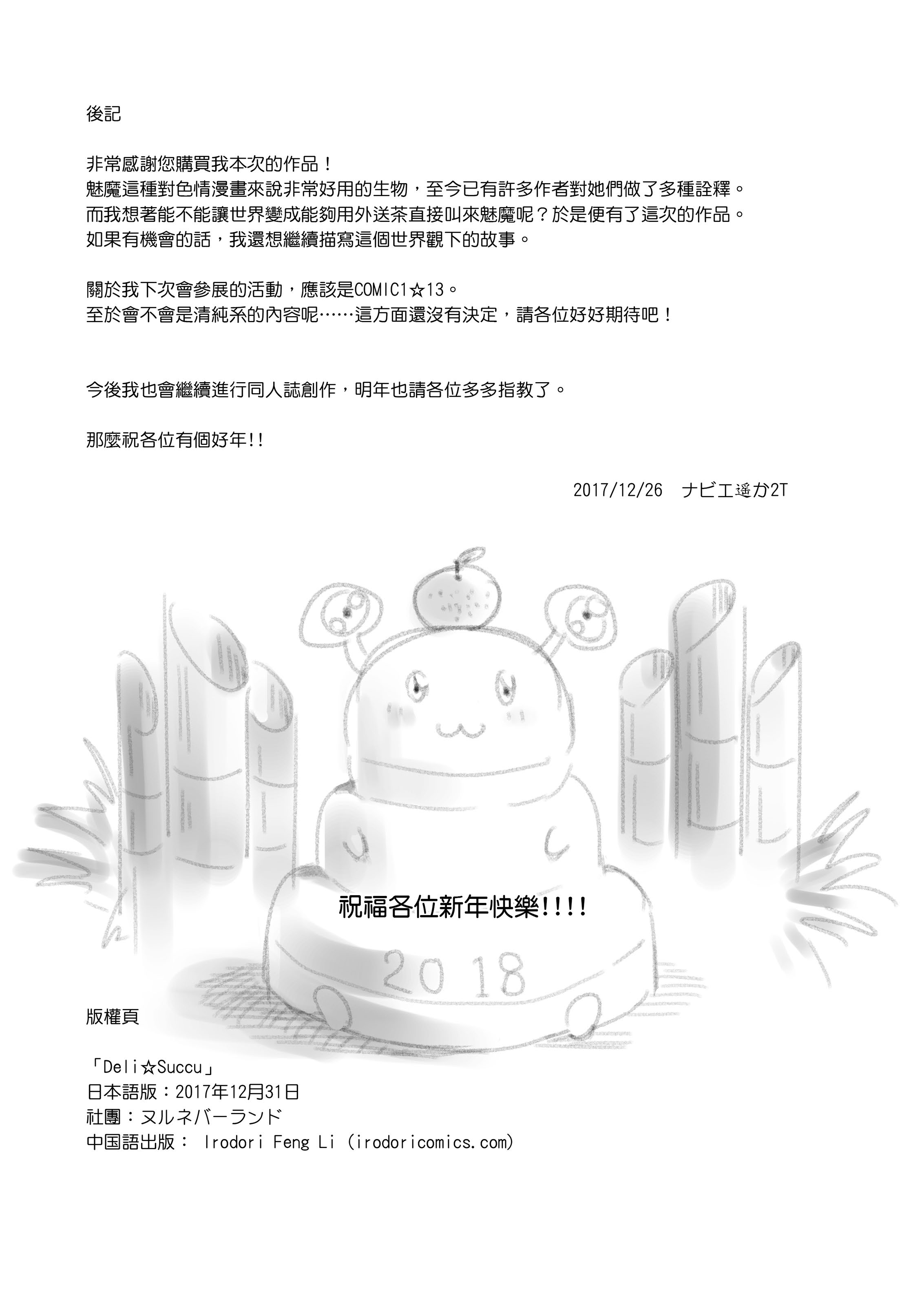 首頁>同人誌>漢化>(C93) [ヌルネバーランド (ナビエ遥か2T)] デリ☆サキュ!! - デリヘル呼んだらサキュバスが来たレポ- | Deli☆Succu -叫外送茶卻來了魅魔的體驗感想 [无修正] [IRODORI中文版]>025