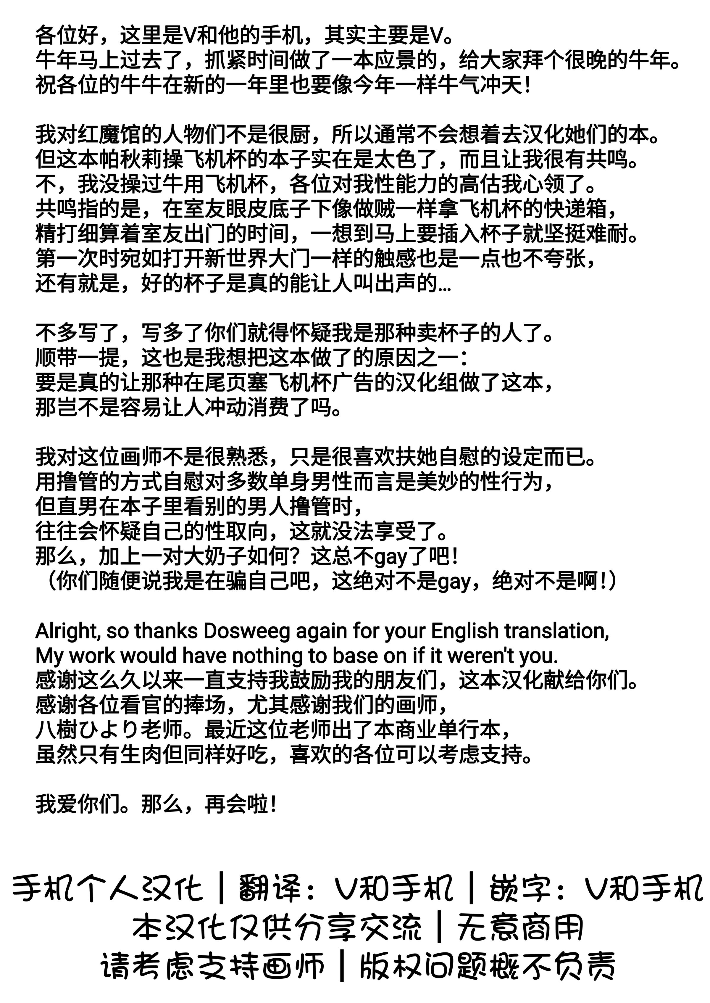 首頁>同人誌>漢化>[八樹ひより] ふたなり大図書館が擬牝台でオナる話 (東方Project) [手机个人汉化•欢送牛年限定版] [DL版]>24