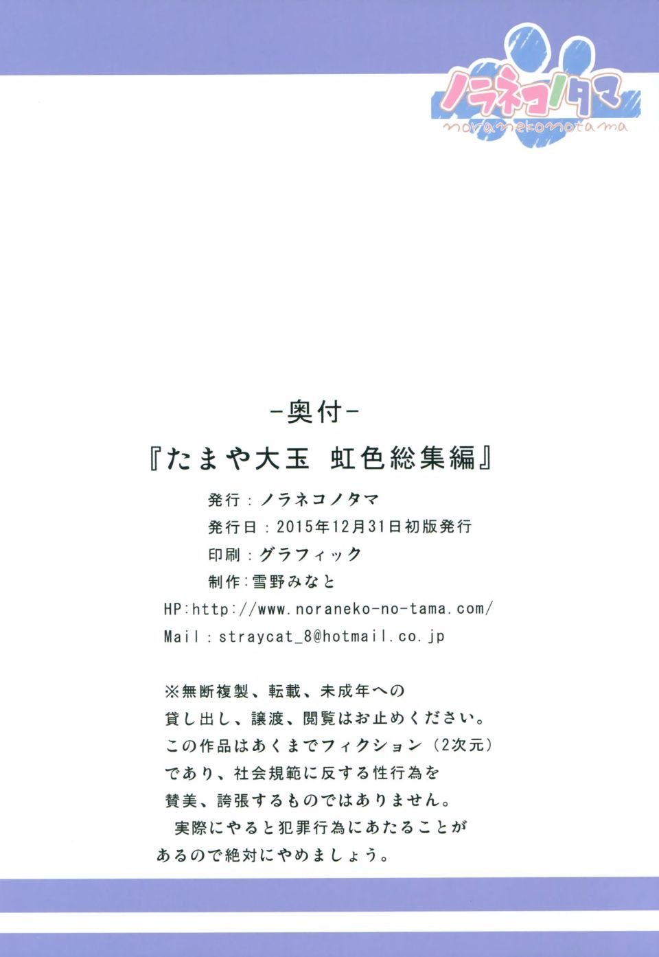 首頁>同人誌>(C89) [ノラネコノタマ (雪野みなと)] たまや大玉 虹色総集編 (よろず>25