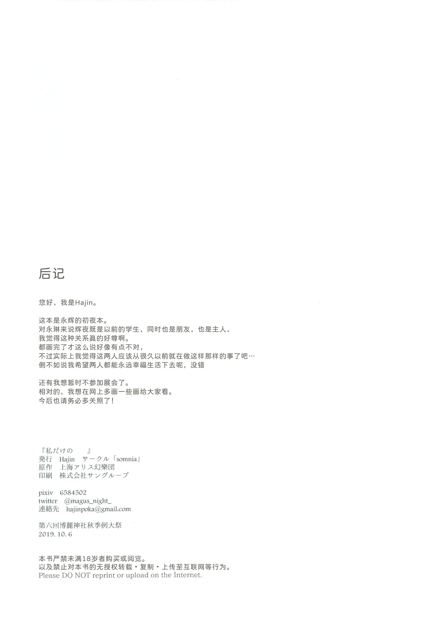 首頁>同人誌>漢化>(秋季例大祭6) [somnia (Hajin)] 私だけの (東方Project) [大受气包烤RO组汉化]>34