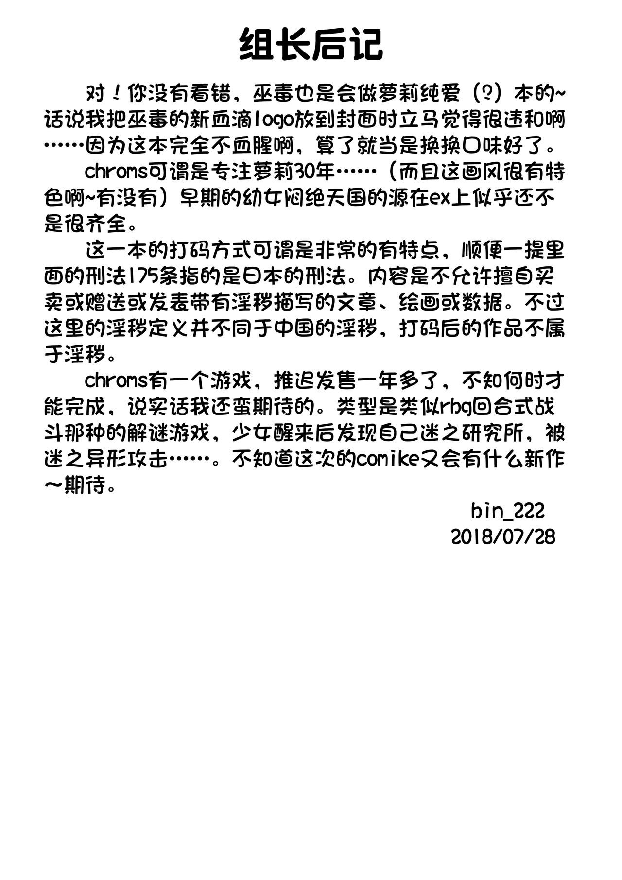 首頁>同人誌>漢化>[巫毒汉化组] (C86) [Kachusha (Chomes)] 少女肉奴隷中…>27