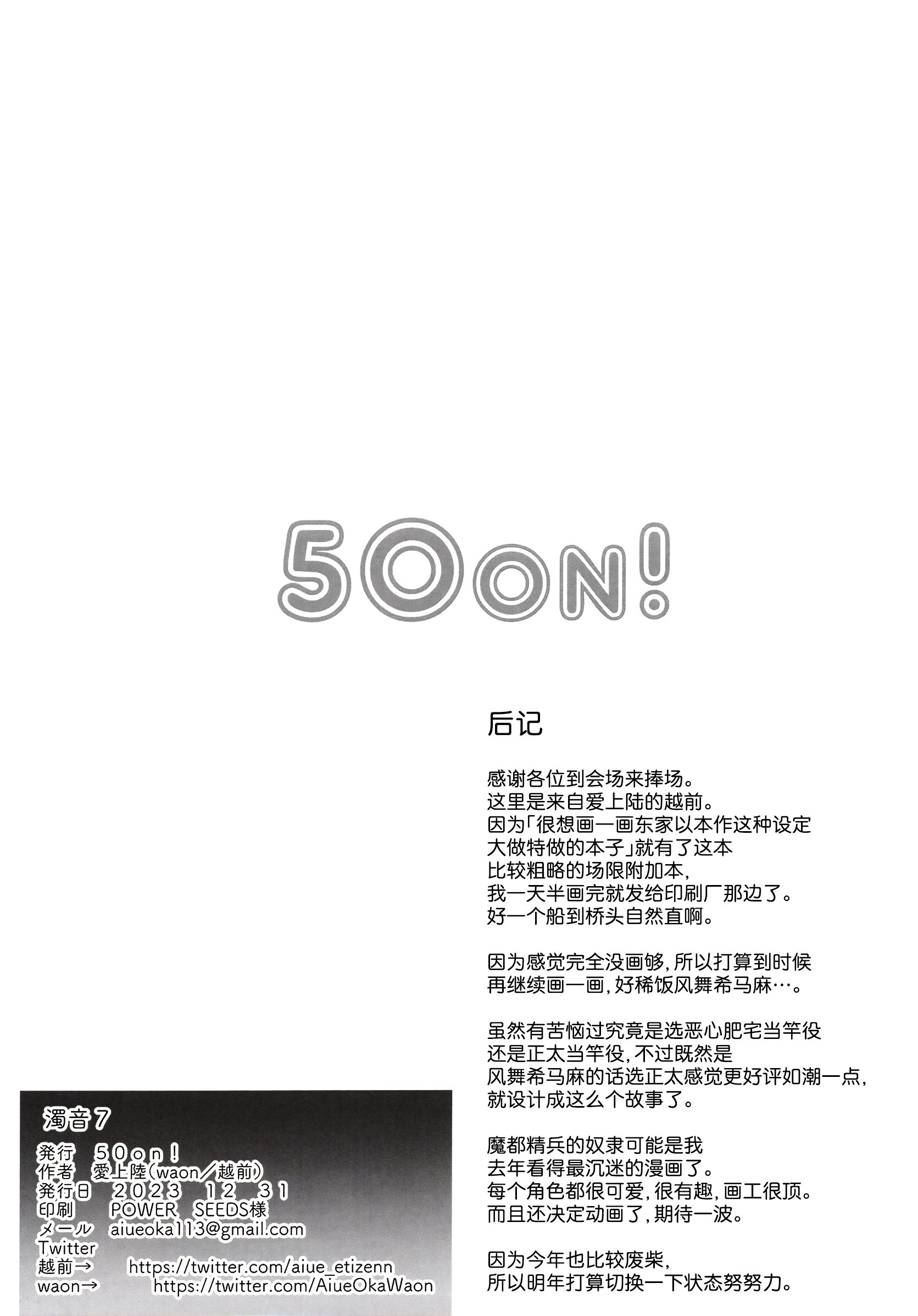 首頁>同人誌>漢化>(C103) [50on! (愛上陸)] 濁音 7 (魔都精兵のスレイブ) [葱鱼个人汉化]>8