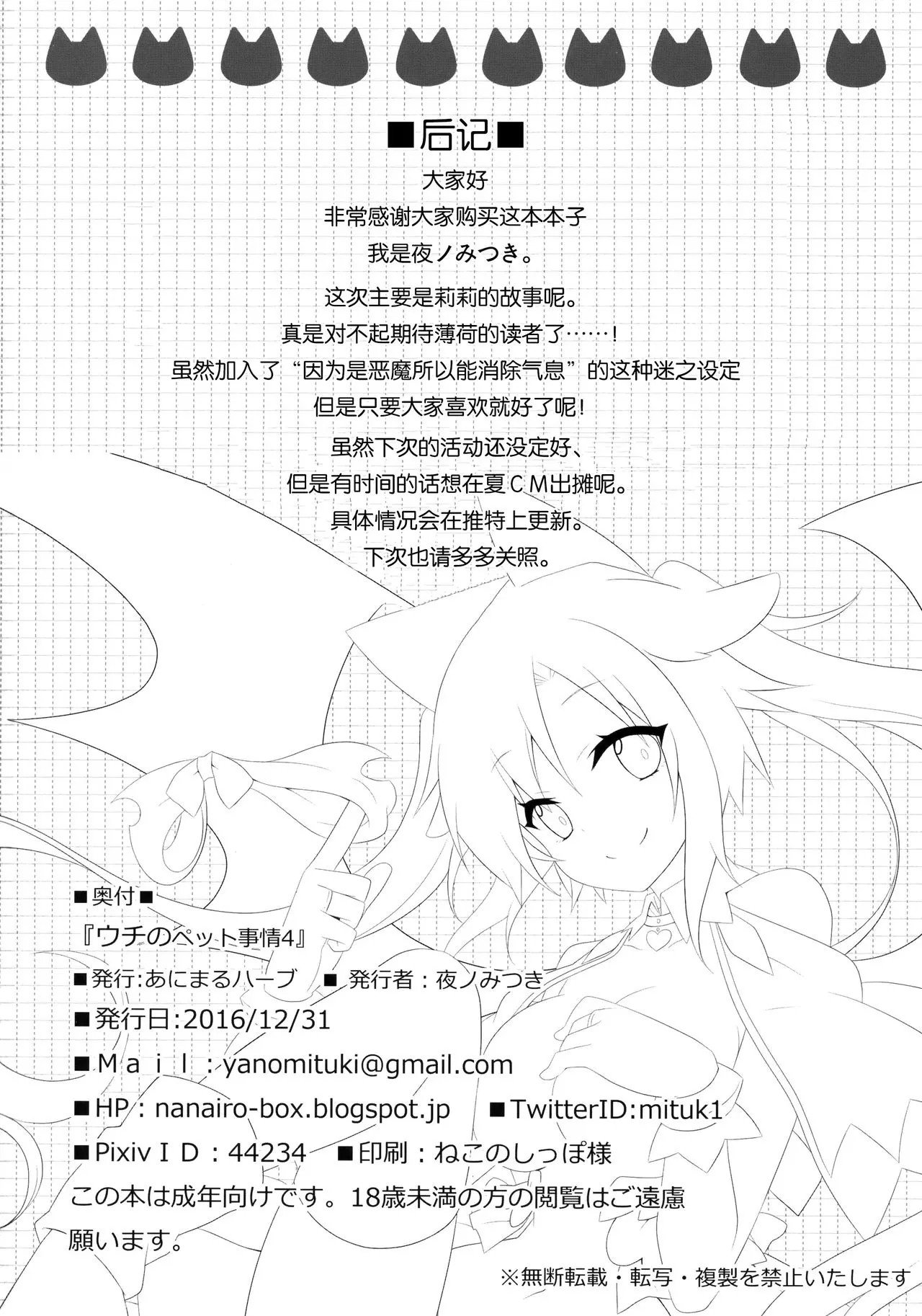 首頁>同人誌>漢化>[绅士仓库汉化] (C91) [あにまるハーブ (夜ノみつき)] ウチのペット事情4>21
