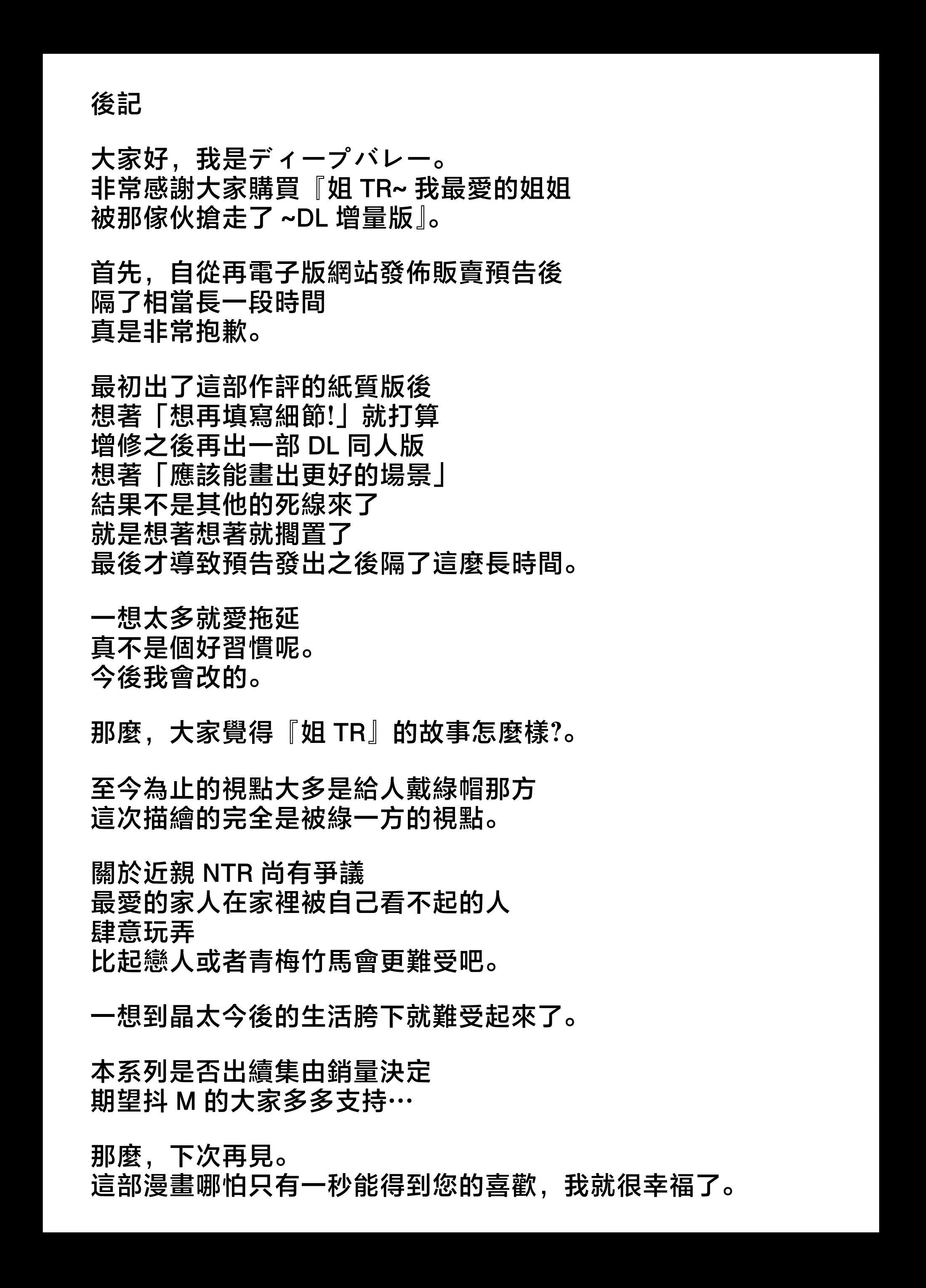 首頁>同人誌>漢化>[グレートキャニオン (ディープバレー)] 姉TRアネトラレ~僕の大好きなお姉ちゃんがアイツに奪われた話~DL増量版 [中国翻訳]>100_TR_102