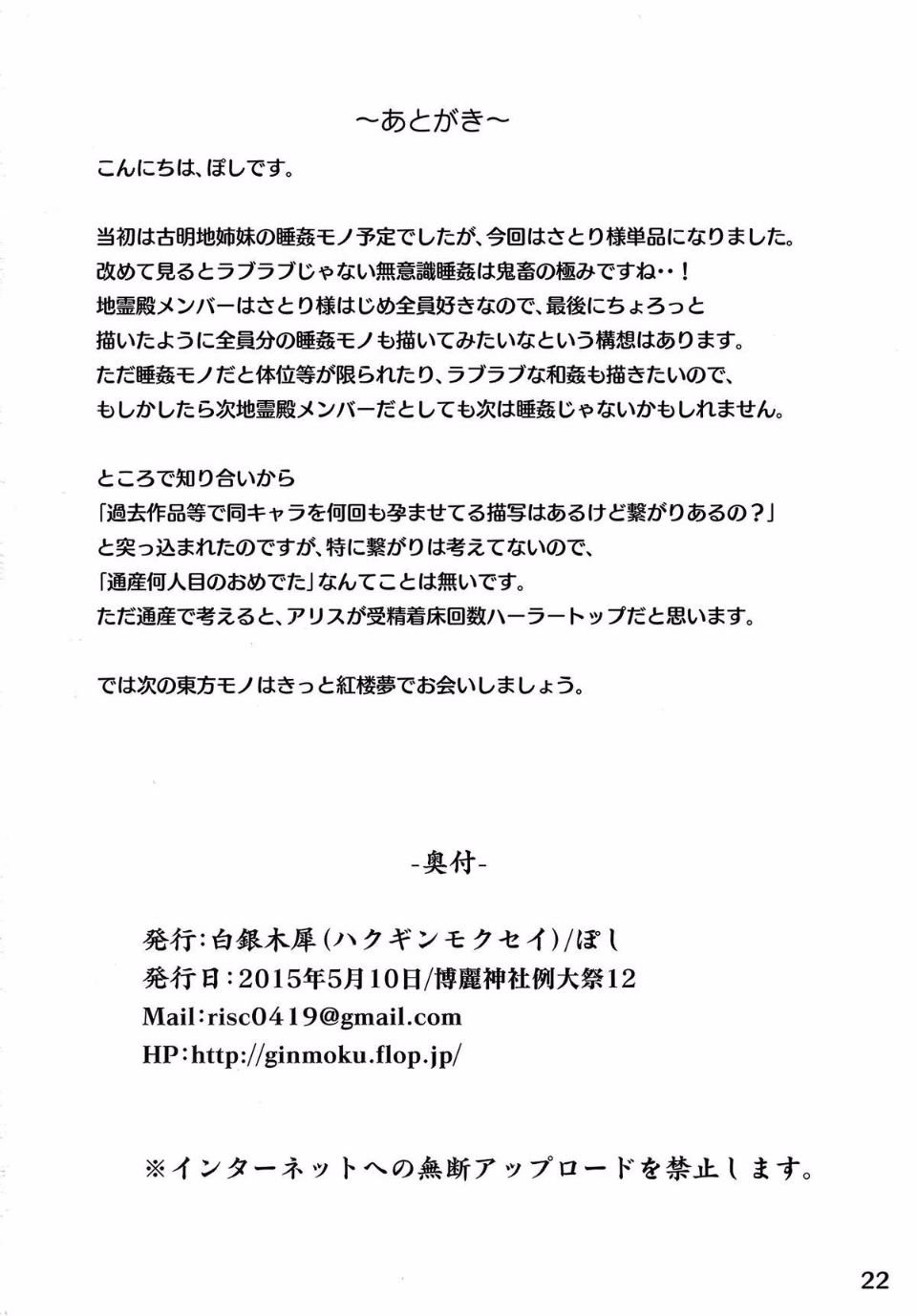首頁>同人誌>(例大祭12) [白銀木犀 (ぽし)] さとり睡姦 (東方Project)>21