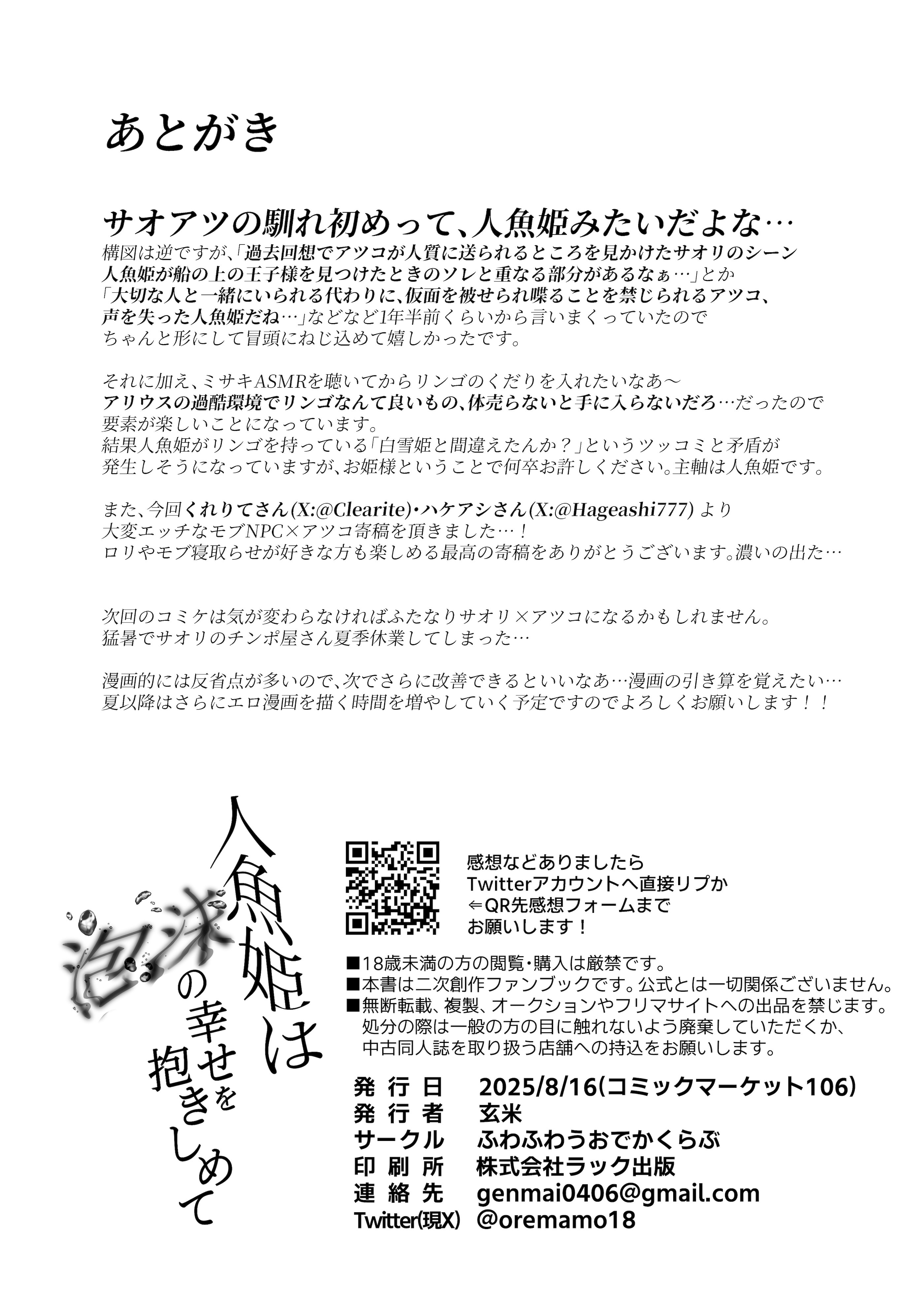 首頁>同人誌>日語>[ふわふわうおでかくらぶ (玄米)] 人魚姫は泡沫の幸せを抱きしめて (ブルーアーカイブ) [DL版]>32_yvgr