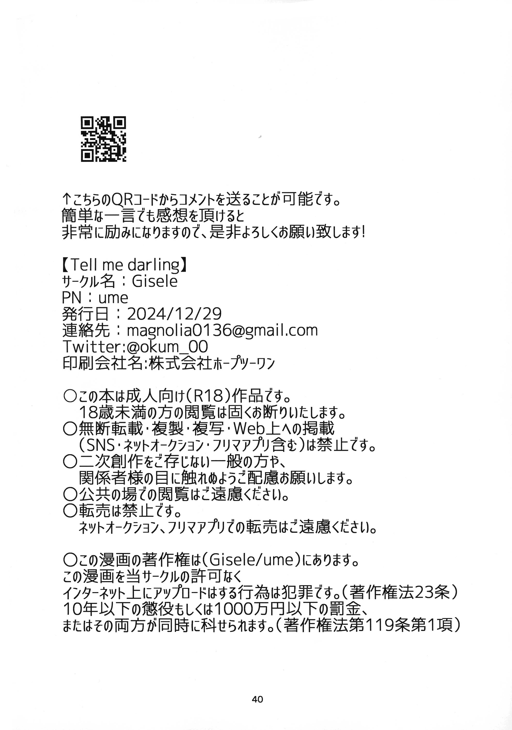 首頁>同人誌>日語>(C105) [Giselle (ume)] Tell Me Darling (ギルティギア)>39