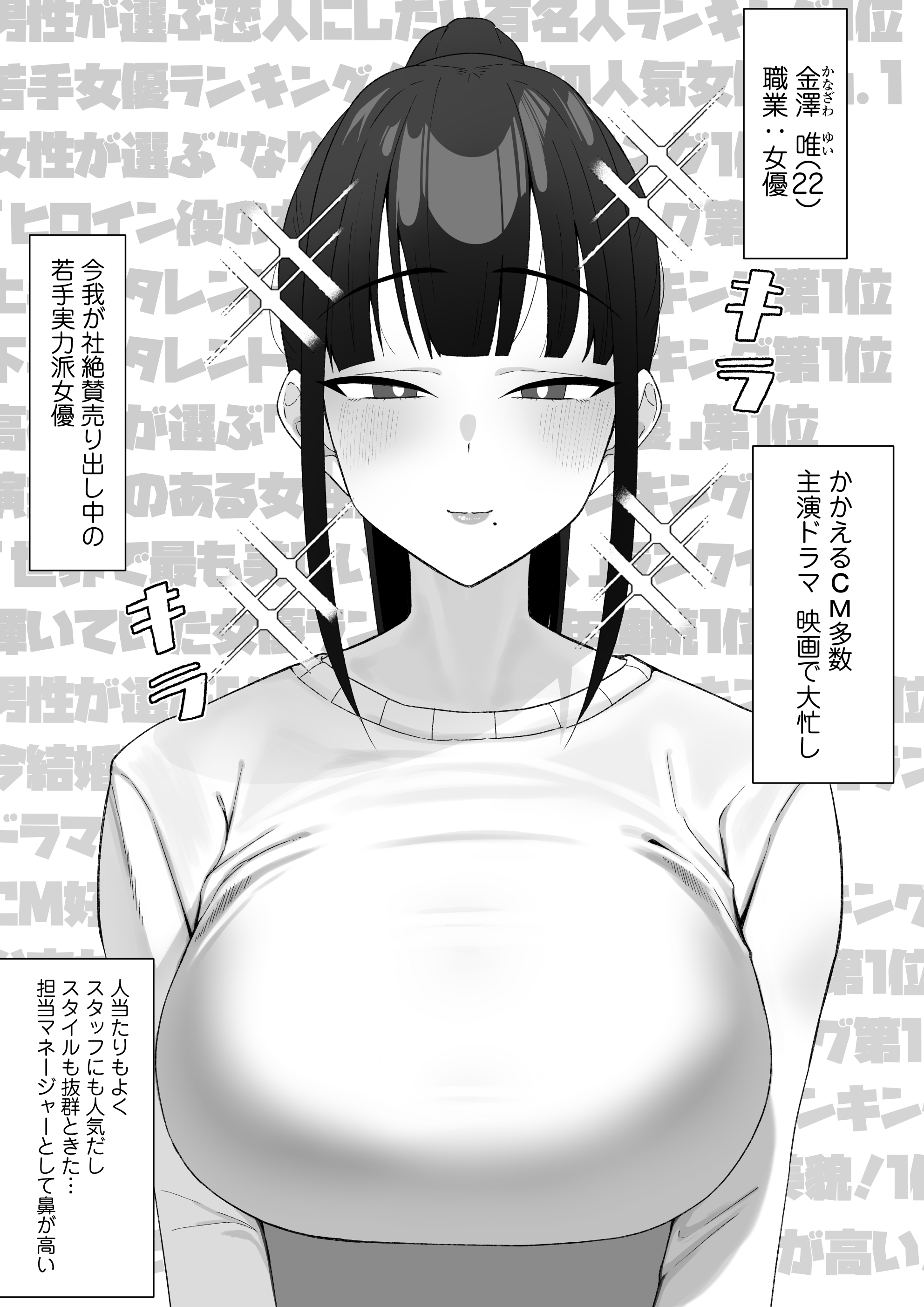 首頁>同人誌>日語>[三崎 (もちおじ)] 人気清楚系女優の裏の顔は超セックス好き!多忙で抑えられた性欲が爆発して巨根マネージャーと楽屋でHしちゃう話>02_hnbn_1